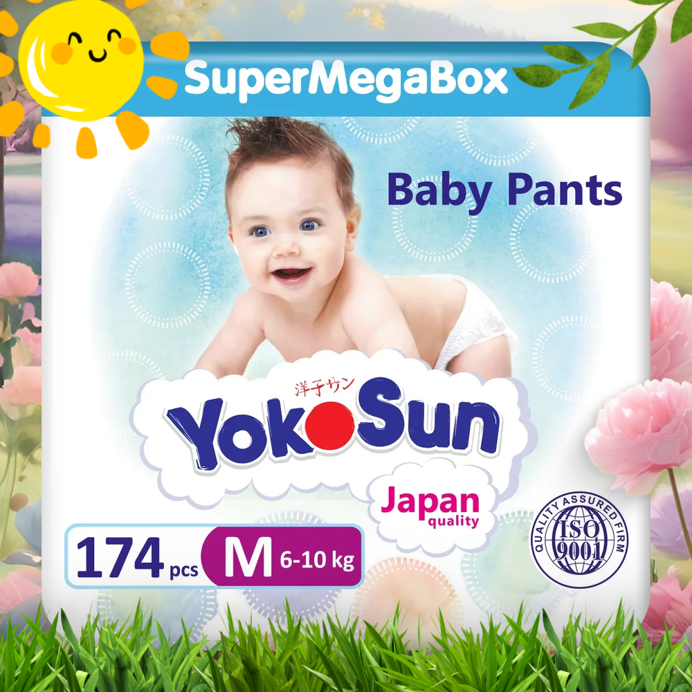 Подгузники-трусики YokoSun, 174 шт, размер M (6-10 кг), (3 уп * 58 шт)