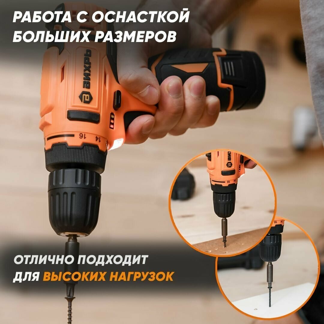 Аккумуляторная дрель-шуруповерт ВИХРЬ ДА-12-1 Li-Ion 72/14/11