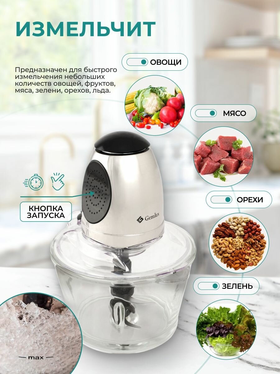 Измельчитель кухонный электрический GEMLUX GL-MC400, чоппер для овощей, фруктов, мяса интересное:
