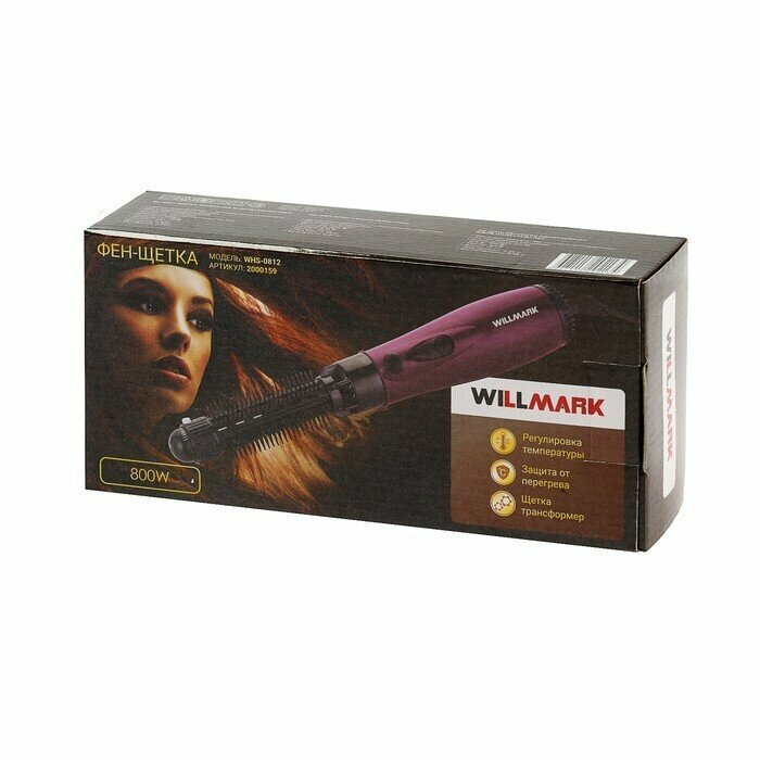 Фен-щётка WILLMARK WHS-0812, 800 Вт, 1 насадка, фиолетовая 3365491