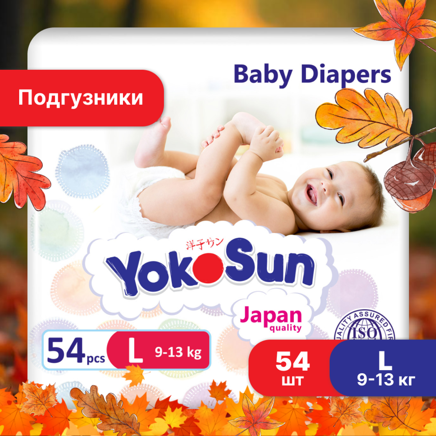 Подгузники YokoSun, размер L, 9-13 кг, 54 шт
