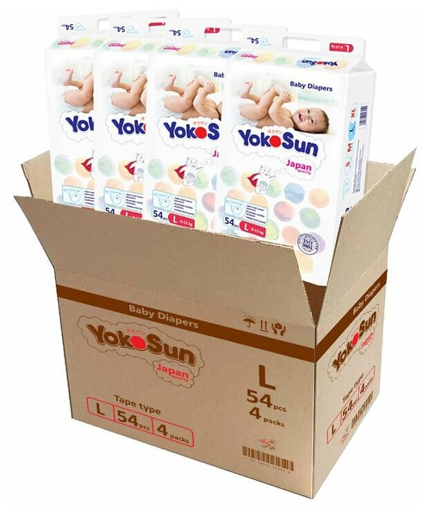 YOKOSUN Набор подгузников L (9-14 кг) 54 шт х 4 уп