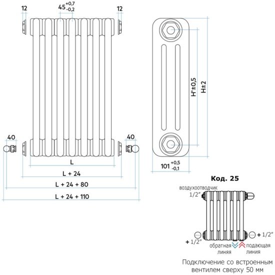 Стальной трубчатый радиатор IRSAP TESI/3 565 EL26 CL.01 T25 / RR305652601A425N01 IRSAP