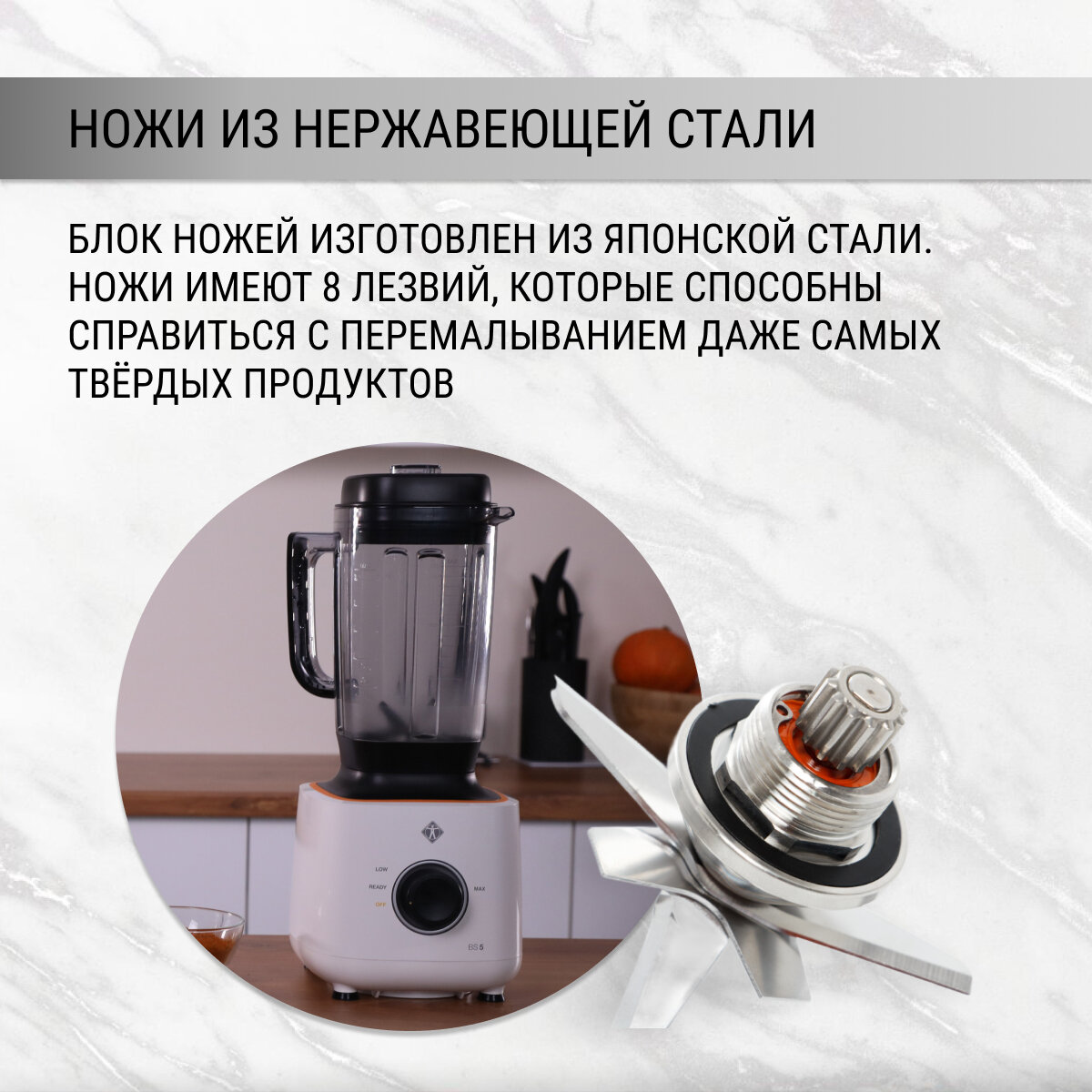 Опыт использования блендера - два месяца. Вещь очень мощная, поэтому легко справляется с измельчением твердых замороженных продуктов или вареной тыквы.