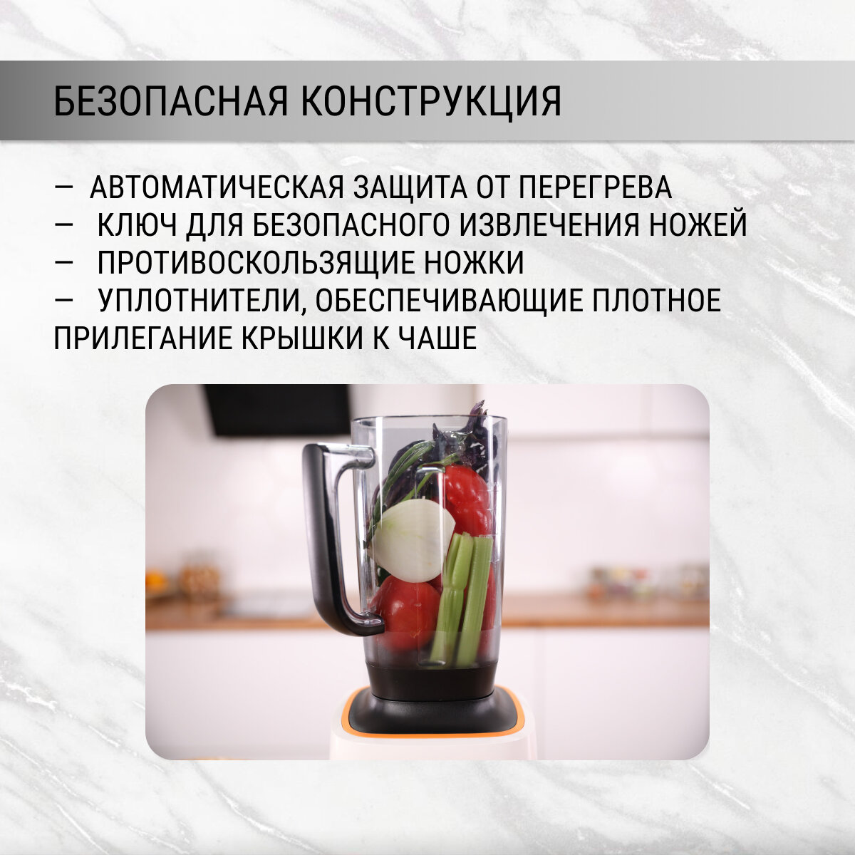 - не нравится прорезиненная оранжевая полоска на корпусе блендера;