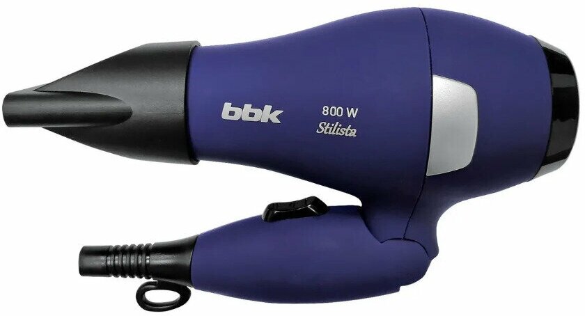 Купить Фен для волос BBK BHD0800 темно-синий, мощность 800 Вт, 2 температурных режима, 2 скорости, складная ручка