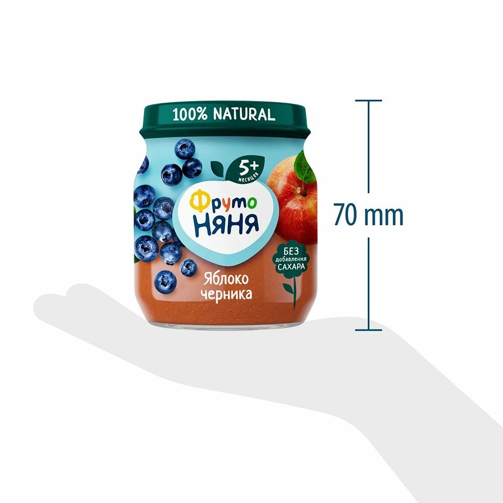 Пюре фрутовое ФрутоНяня с 5 месяцев, яблоко и черника, 100 г, 12 шт.
