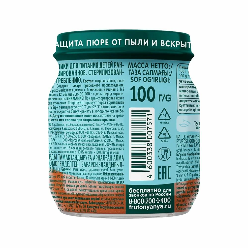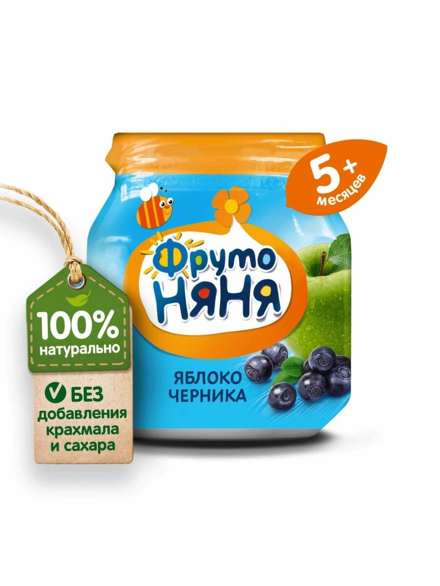 Пюре ФрутоНяня яблоко и черника, с 5 месяцев, 100 г, 12 шт.