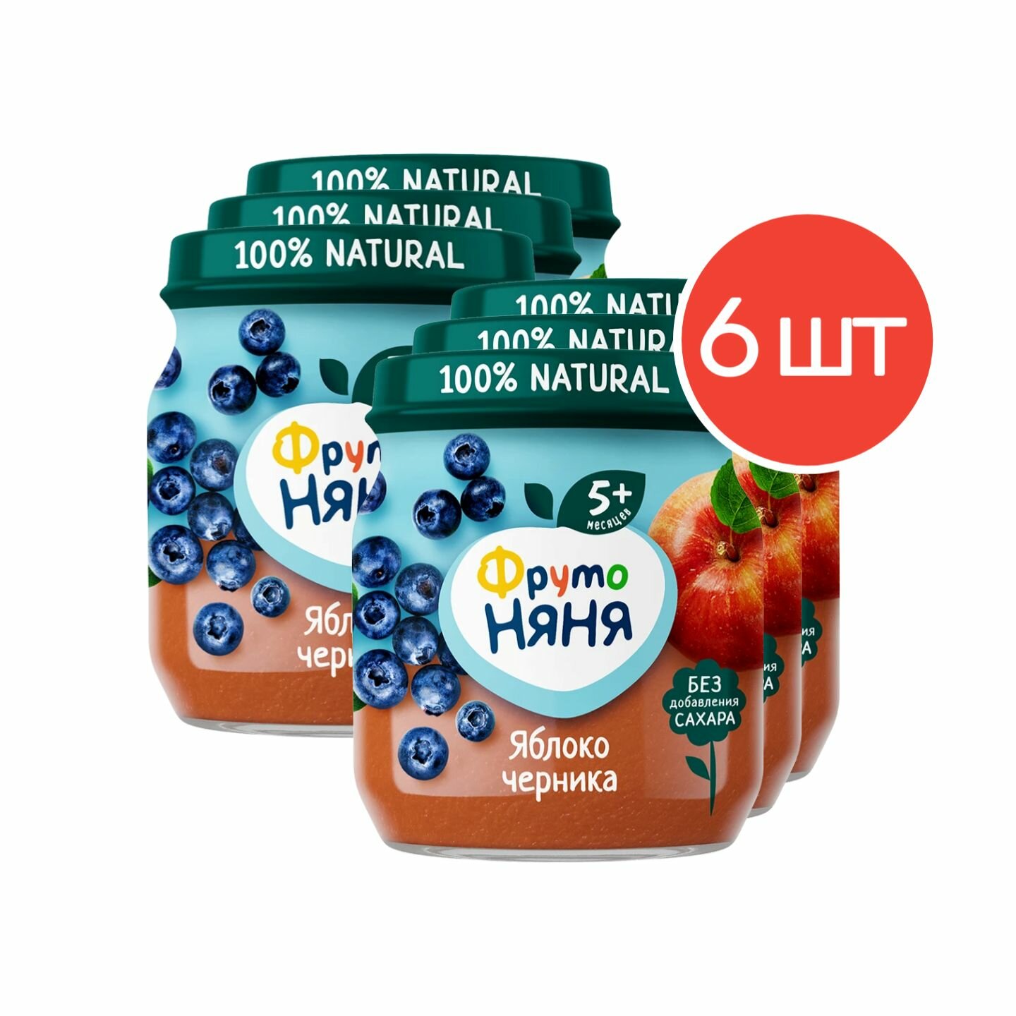 Пюре фрутовое ФрутоНяня с 5 месяцев, яблоко и черника, 100 г, 6 шт