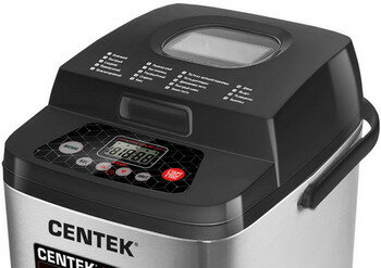 Хлебопечка CENTEK CT-1410, black/silver, 750г, 650Вт, 19 программ, таймер, LCD, окошко, нерж.