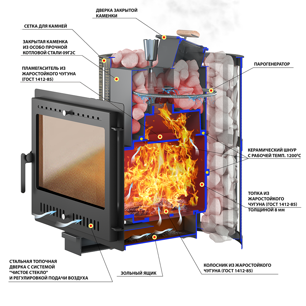 Везувий Чугунная печь для бани Везувий Ураган Ковка 22 (Панорама "М")(- -) интересное: