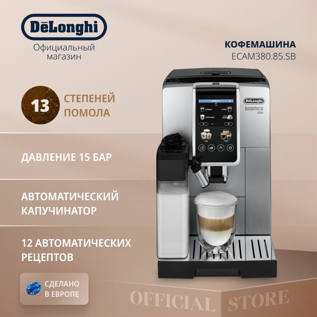 СохранитьКофемашина автоматическая Delonghi Dinamica Plus ECAM380.85.SB серебристый, черный интересное: