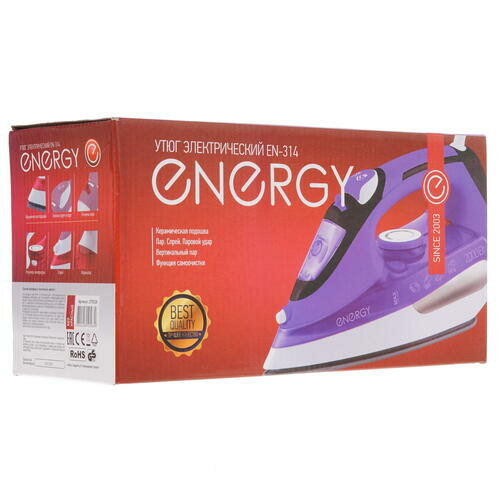 Утюг ENERGY EN-314, 2000 Вт, керамическая подошва, 300 мл, фиолетовый Energy 1743794 .
