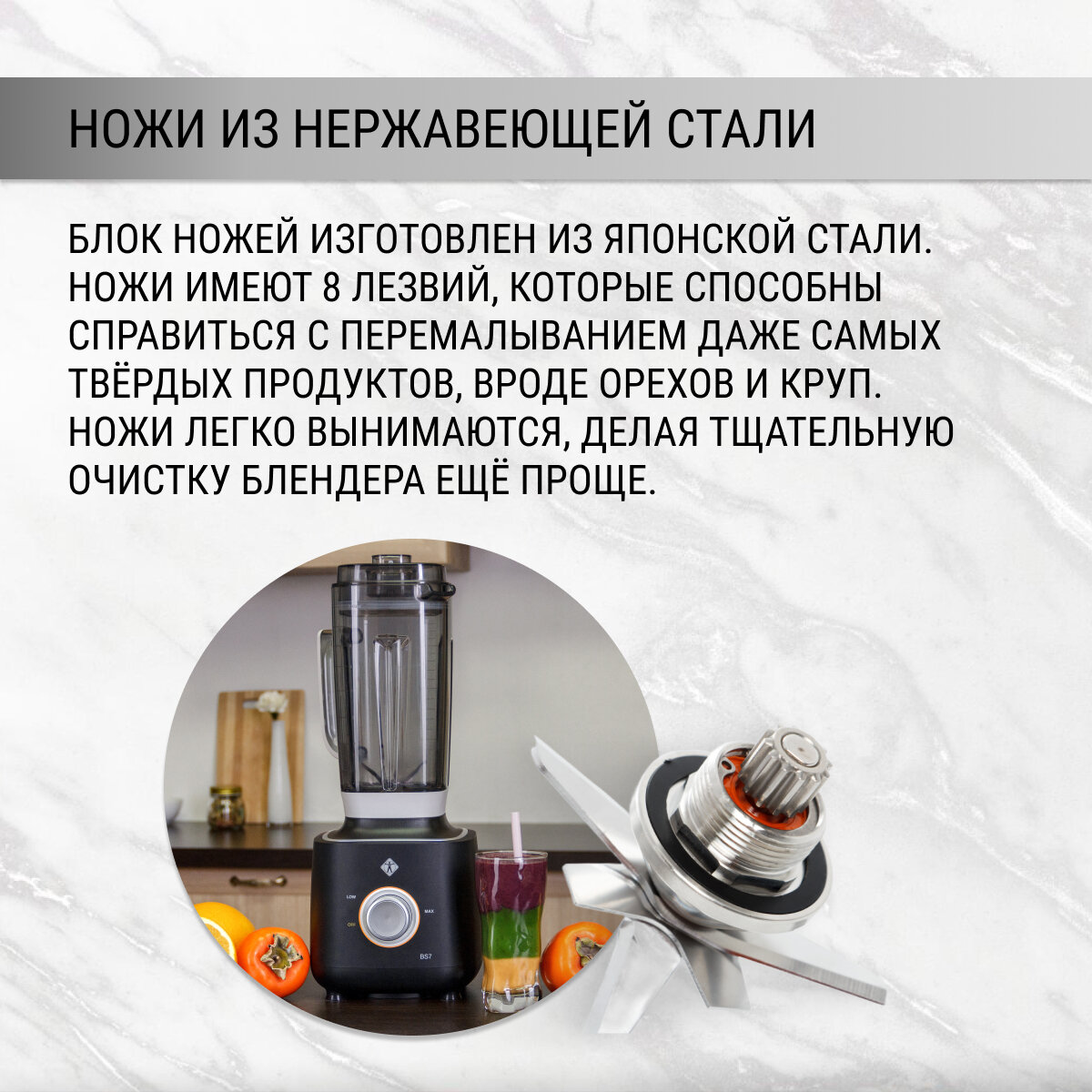 За минуту перемалывает все в "шелк" (гладкую текстуру). Продуман идеально: внешний вид (стильно смотрится), приятно готовить (справляется с любой задачей), уход (прекрасно моется), чаши из безопасных материалов. Рекомендую - лучший среди блендеров! |