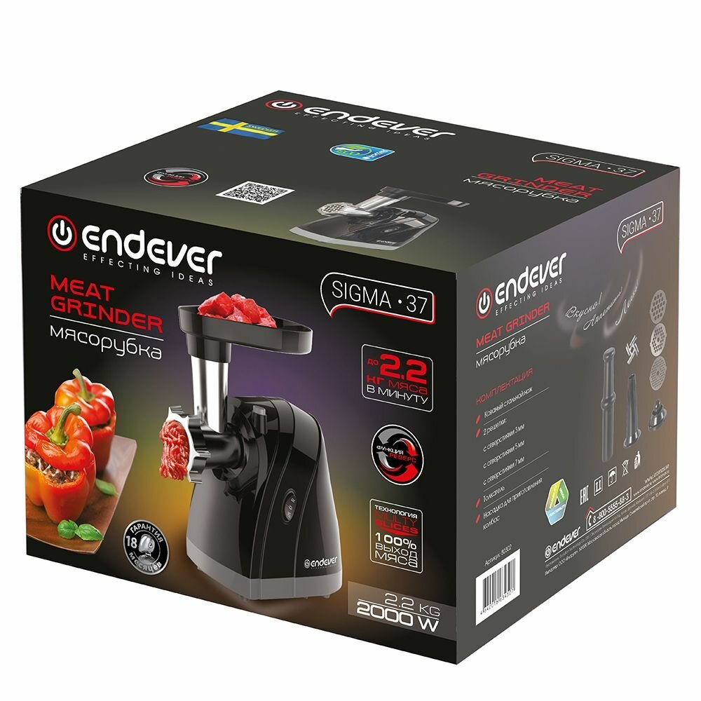 Мясорубка электрическая Endever Sigma-37 / 2000 Вт / до 2 кг/мин интересное: