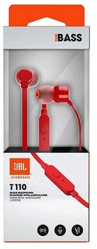 Наушники внутриканальные JBL T110 с микрофоном, 3.5 мм, красный (JBLT110RED)