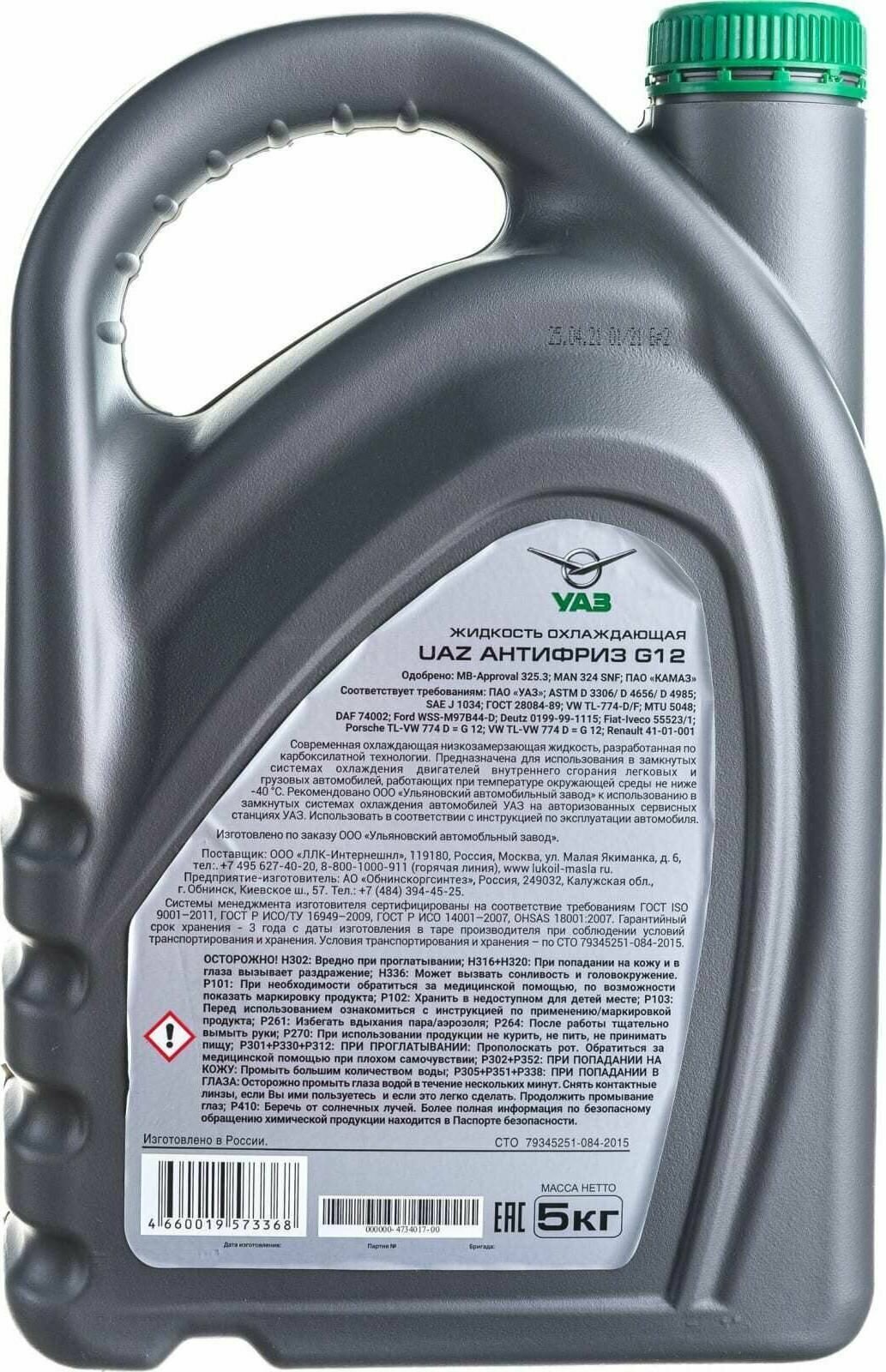 UAZ Антифриз G-12 /5 кг/ зеленый 000000473401700 .
