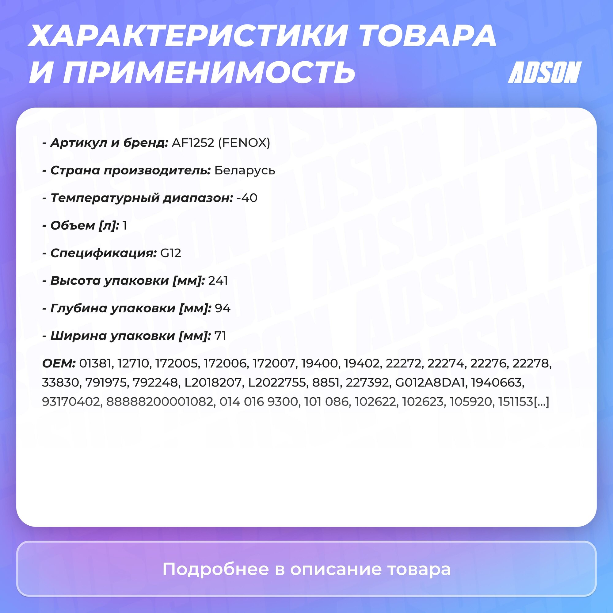 FENOX AF1252 Антифриз