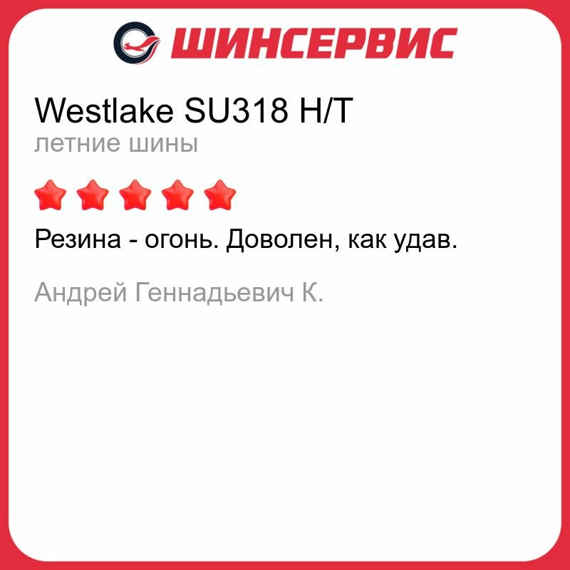 Ниже Вы можете прочитать отзывы на Шина Westlake SU318 H/T 235/60 R18 103V, ознакомится с подробными характеристиками, посмотреть интересные обзоры и фотографии на Шина Westlake SU318 H/T 235/60 R18 103V.