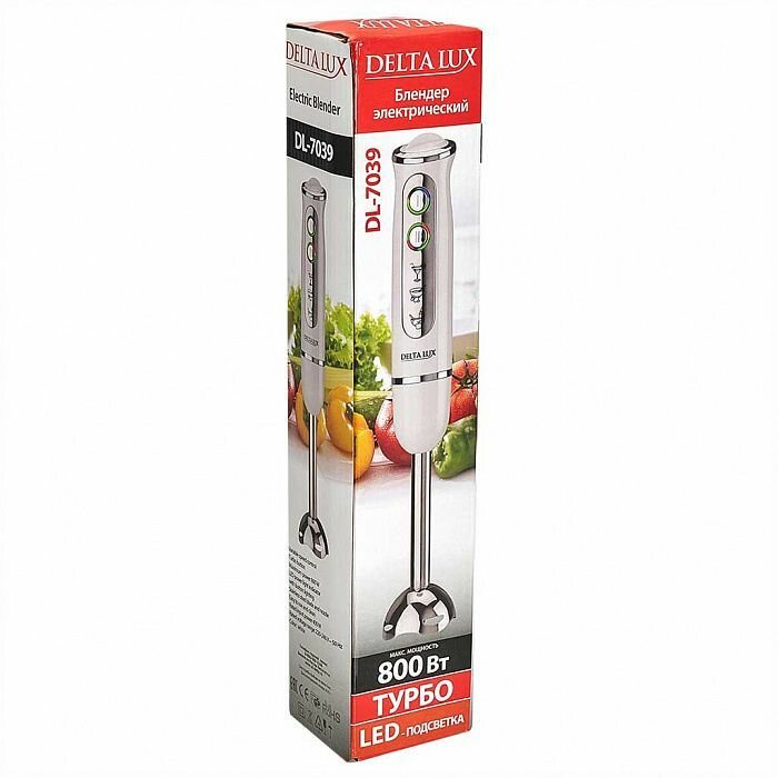 Купить Блендер DELTA LUX DL-7039, погружной, 800 Вт, 1 скорость, режим "турбо", белый