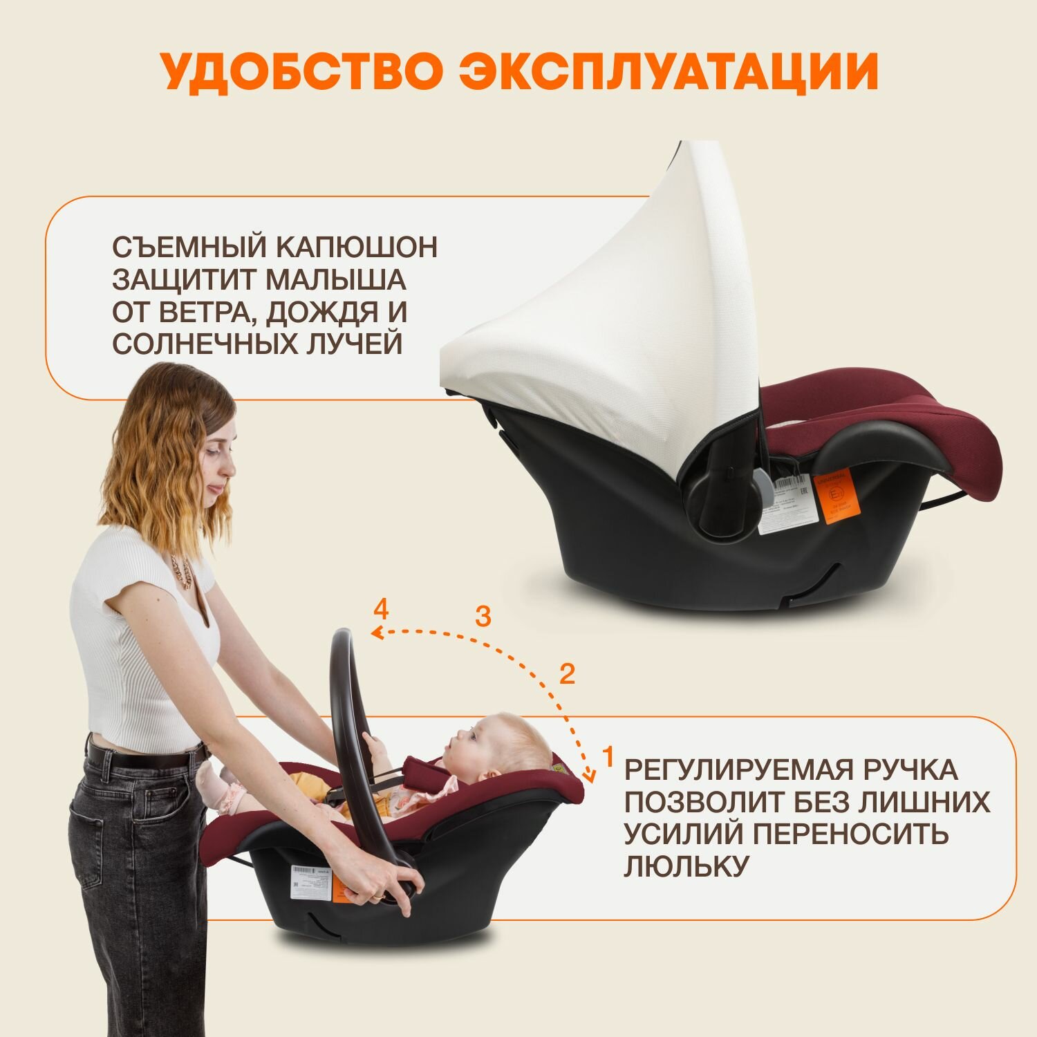 | Отзыв: | Мягкие материалы, идеальное положение для малыша, есть капюшон для защиты от солнца. Всем заявленным характеристикам соответствует. |