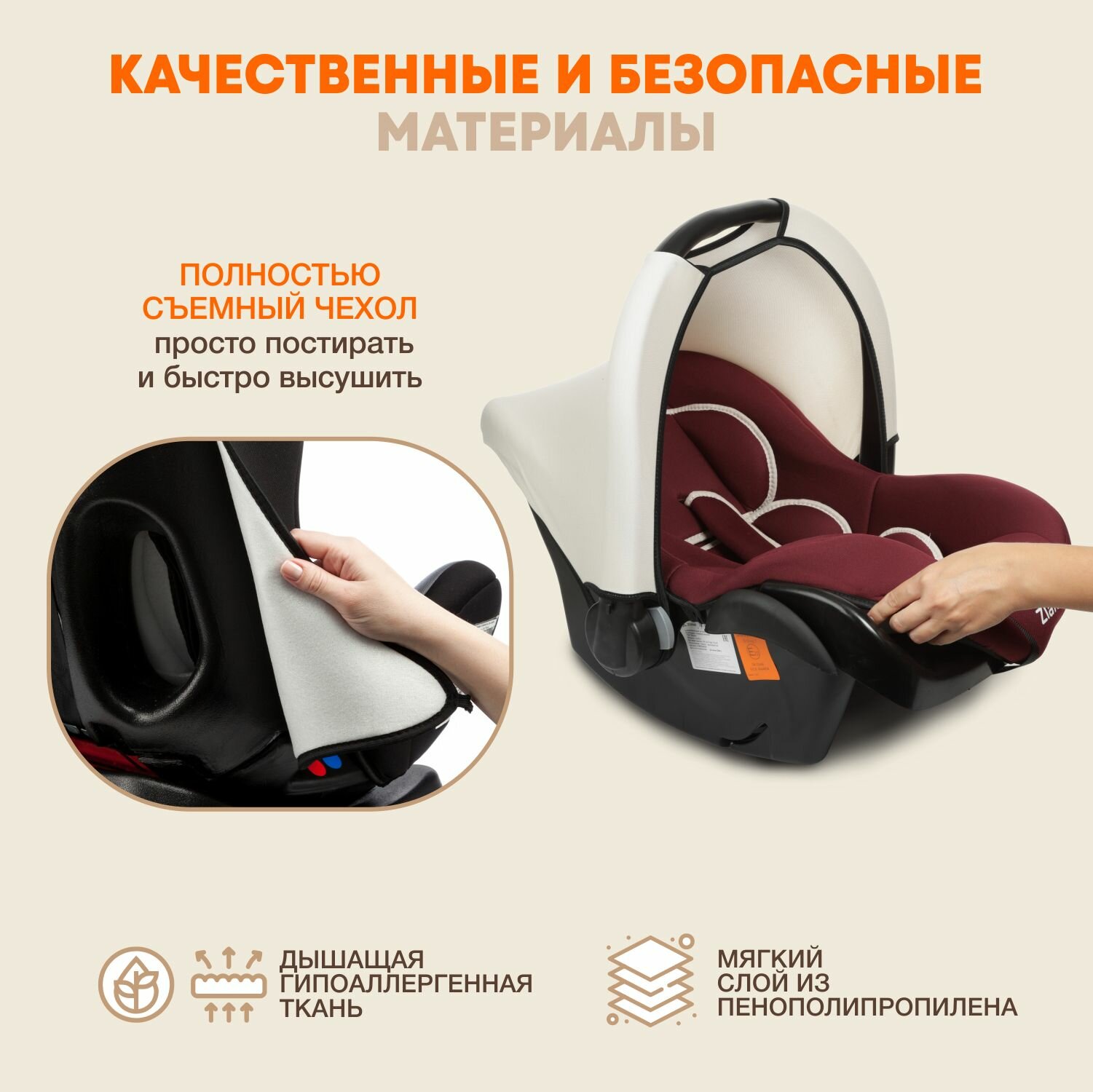 Автокресло-переноска группа 0+ (до 13 кг) Zlatek Colibri Lux, этно