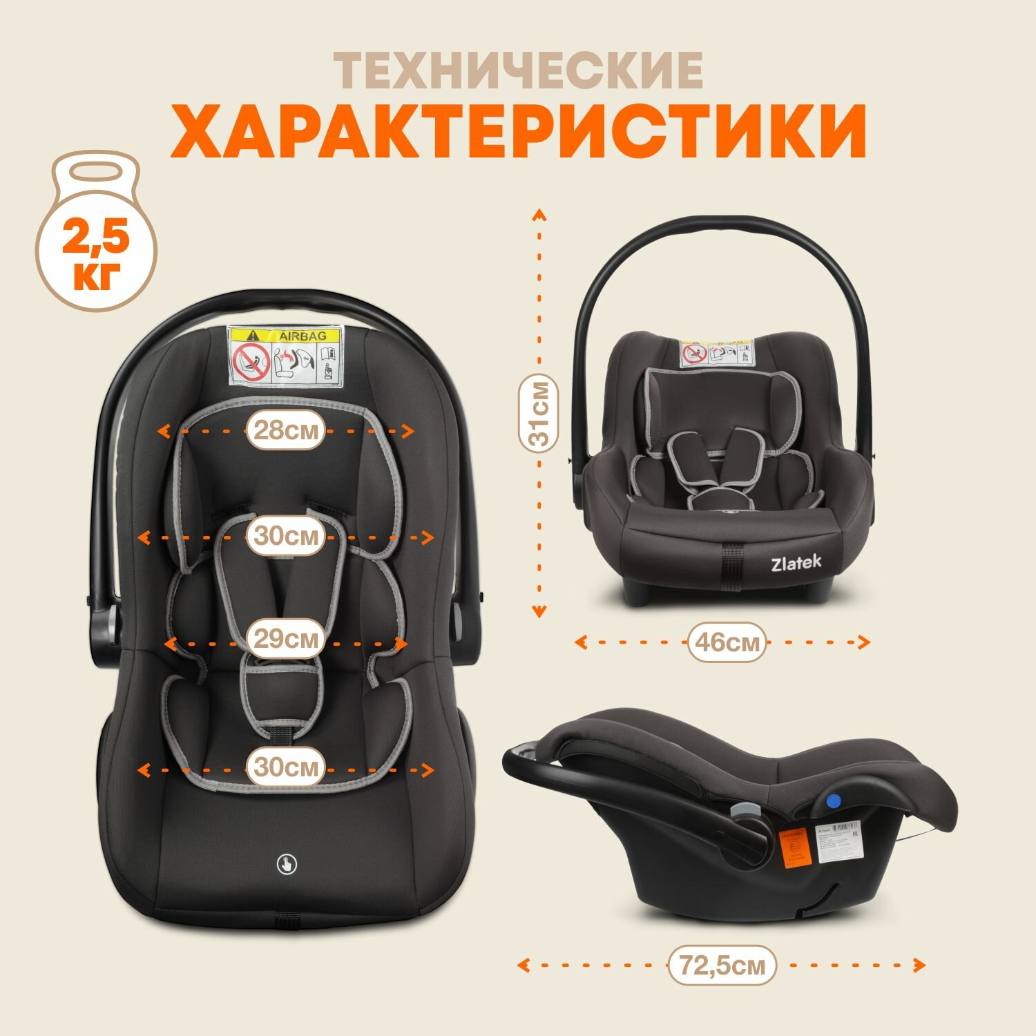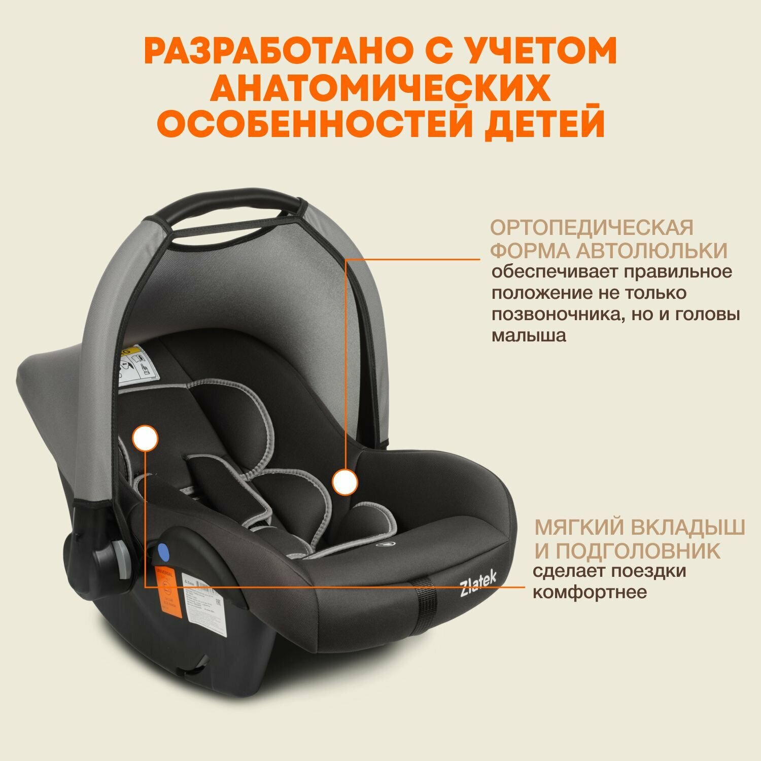 СохранитьАвтокресло детское, автолюлька для новорожденных Zlatek Colibri Люкс от 0 до 13 кг, цвет темно-серый интересное:
