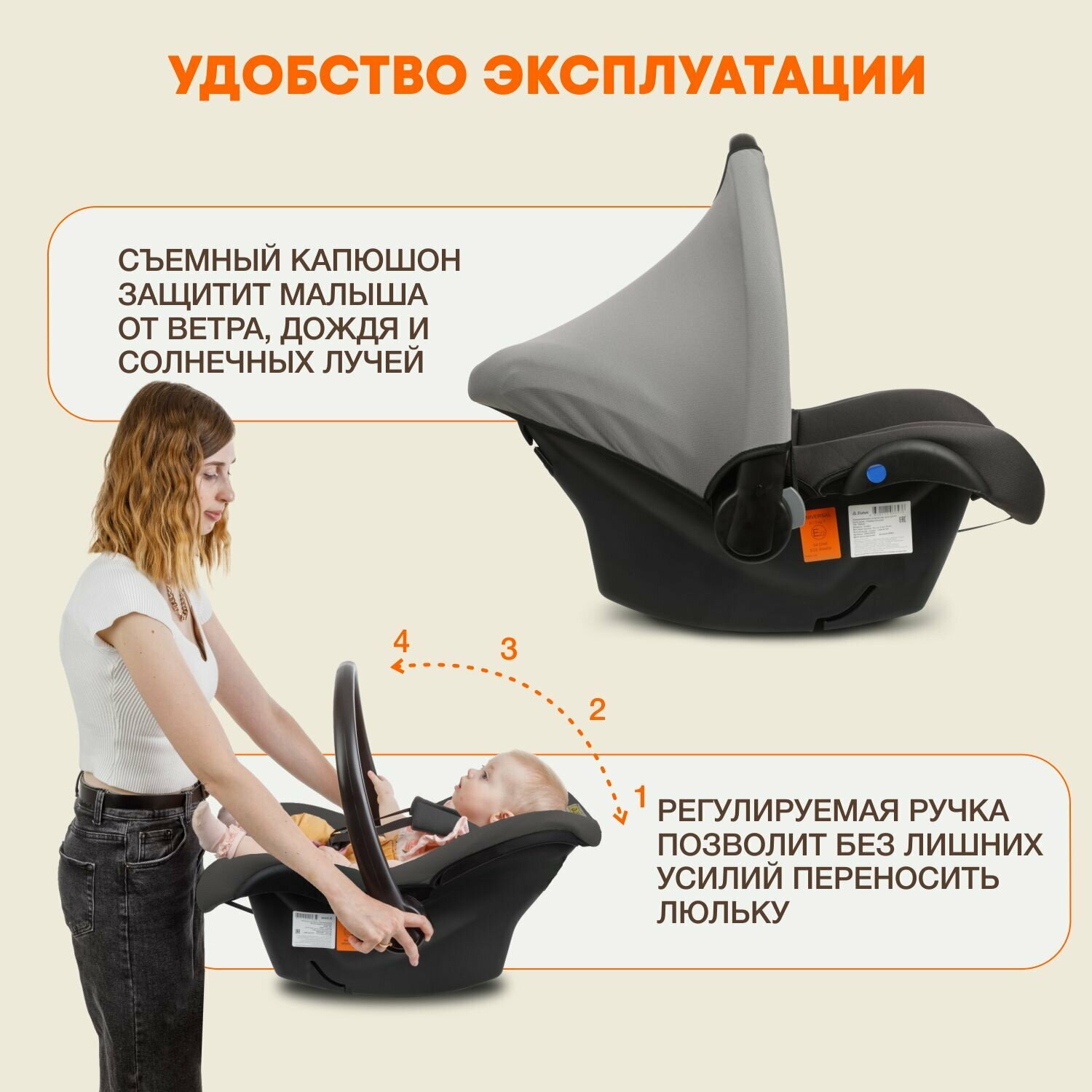 | Плюсы: | Отличная переноска! Очень мягкая и комфортная. Ремешки младенцу не мешают, у них очень мягкие накладки. Капюшон легко снимается и надевается. Ручка переноски удобная, не шатка, надежная. |