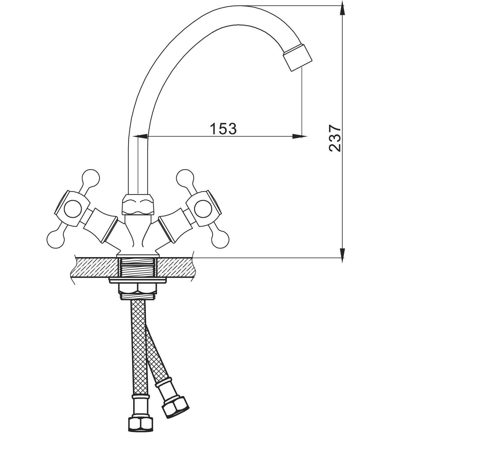 Accoona Cмеситель для кухни Accoona A4678, двухвентильный, с гайкой, силумин, хром