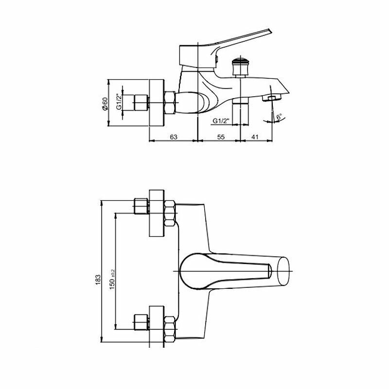 Настенный смеситель Paini Messina, арт. MECR111KM, неповоротный излив, с выходом на душ (без лейки), излив 159 мм