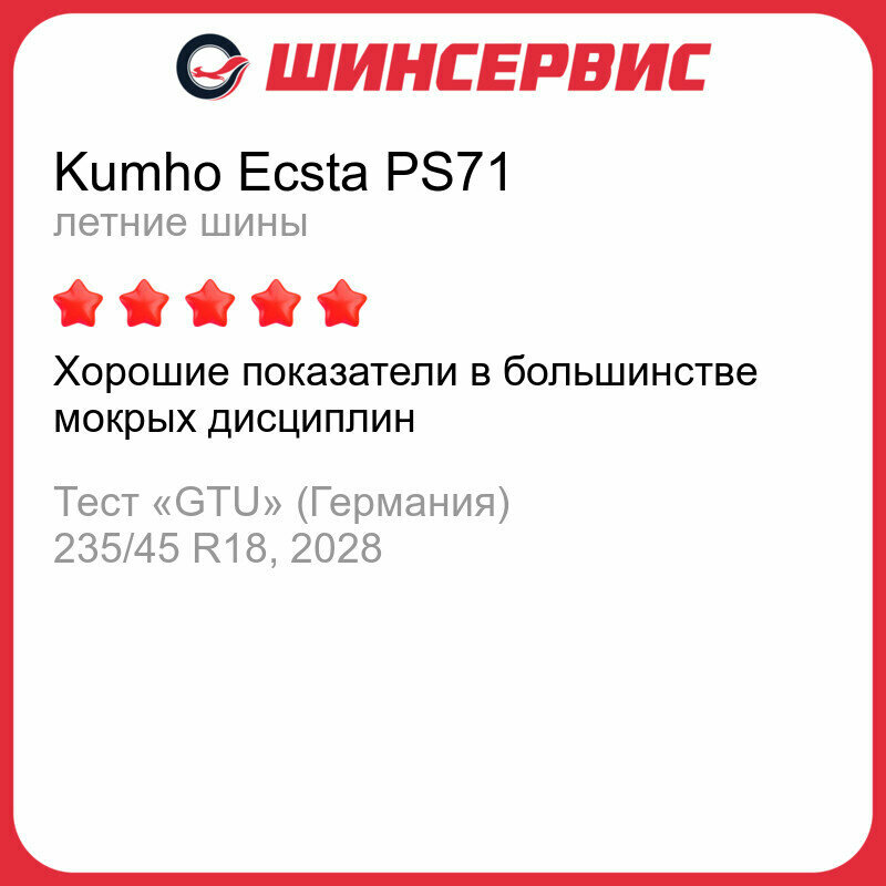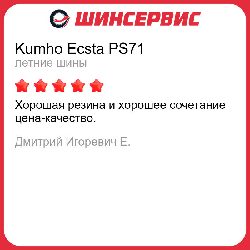Ниже Вы можете прочитать отзывы на Kumho Ecsta PS71 265/40 R21 Y106, ознакомится с подробными характеристиками, посмотреть интересные обзоры и фотографии на Kumho Ecsta PS71 265/40 R21 Y106.