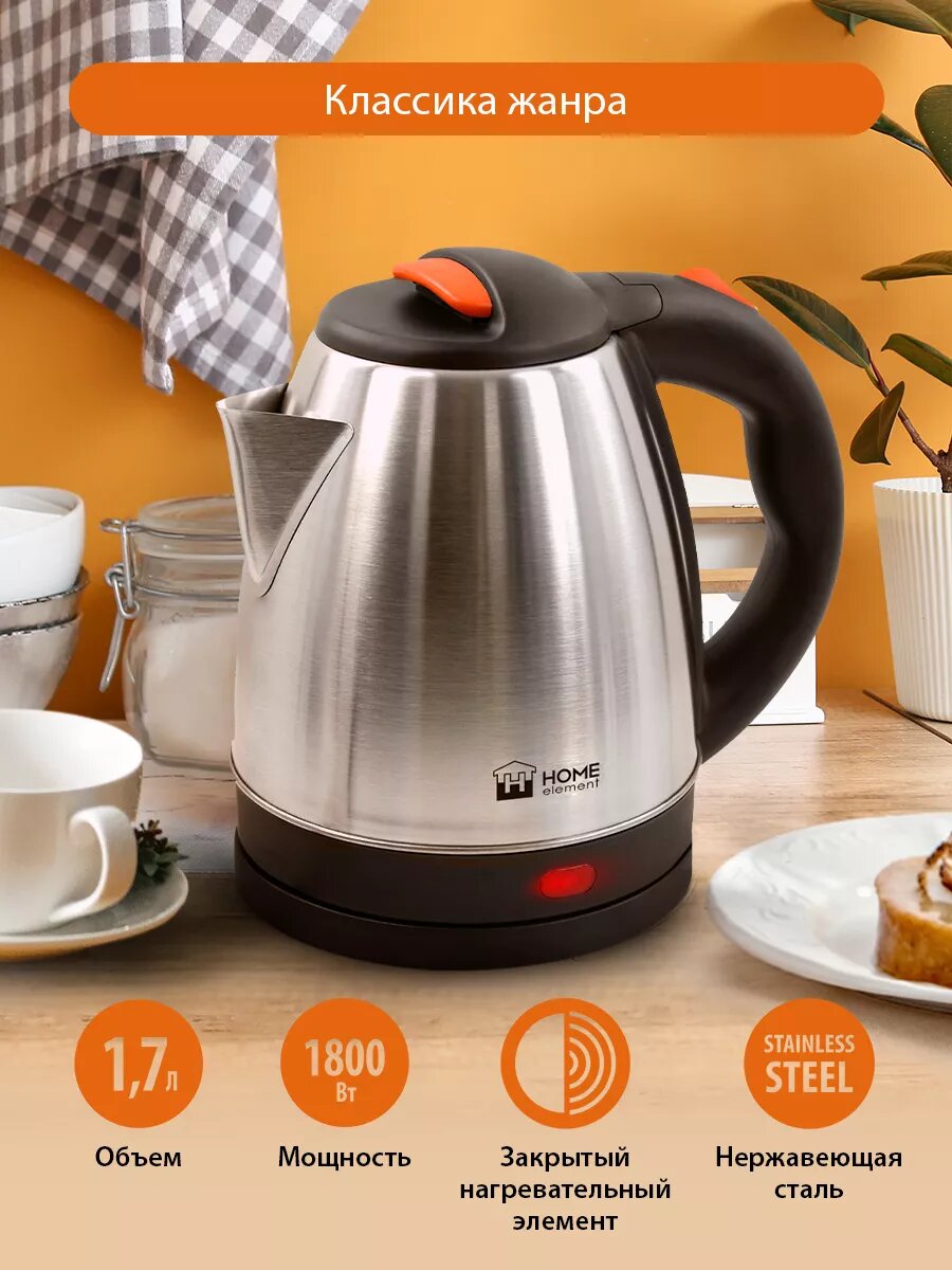 HOME ELEMENT HE-KT166 черный/сталь чайник металлический