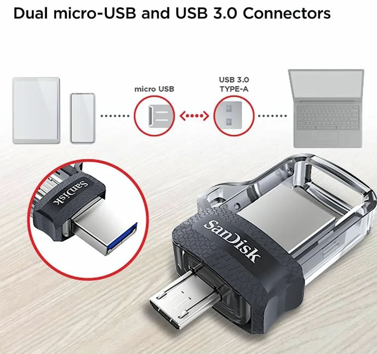 OTG USB Flash 16GB microUSB SanDisk Ultra Dual M3.0 (usb3.0, чёрный) [sddd3-016g-g46]
