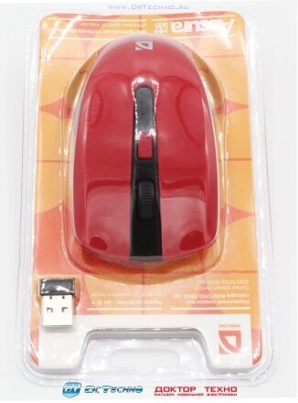 Беспроводная мышь Defender Acura MM-935, 4 кнопки, 800-1600 dpi, питание 2*ААА. радиус действия 10 м, красная