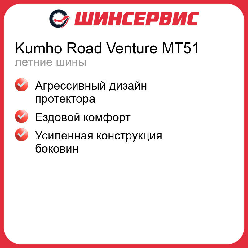 Шины Kumho MT51 Kumho Road Venture 265/70/R16 117/114Q