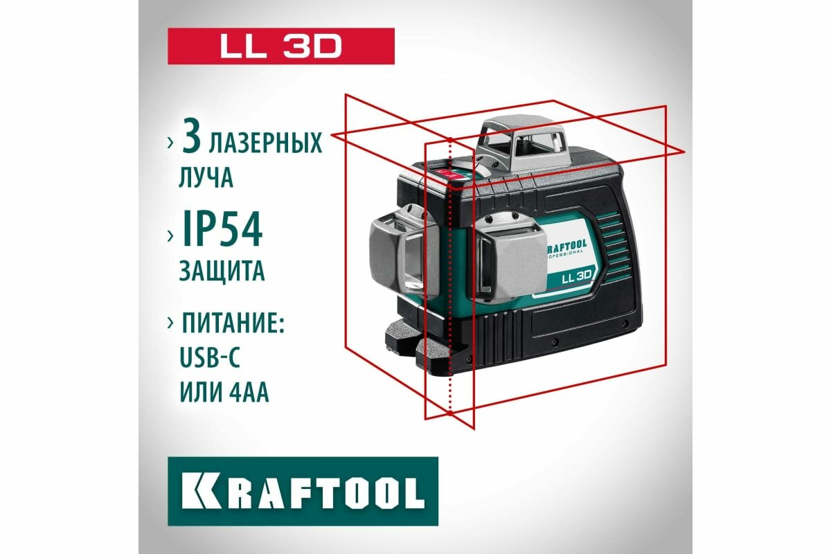 KRAFTOOL LL 3D нивелир лазерный, в коробке (34640_z01)