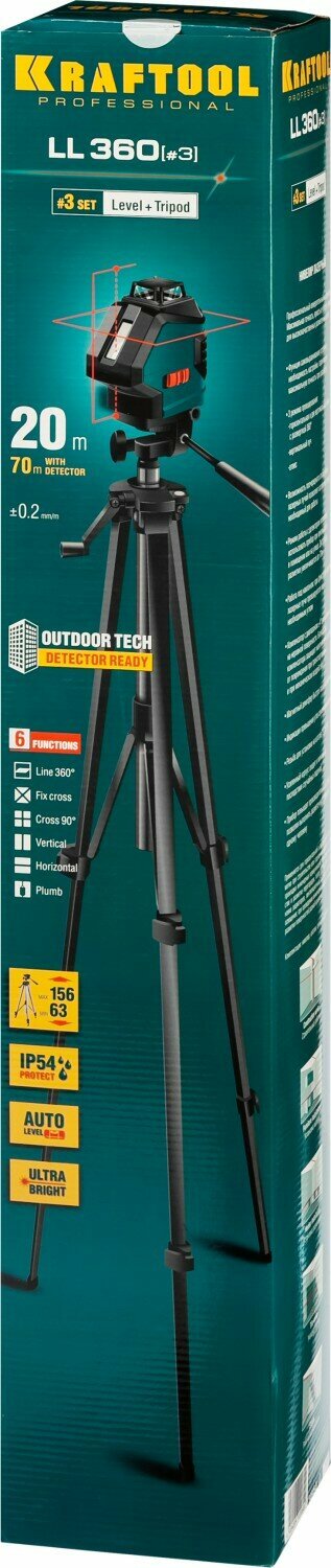KRAFTOOL LL360 #3 нивелир лазерный, 2х360° , 20м/70м, IP54, точн. +/-0,2 мм/м, штатив, в коробке (34645-3)