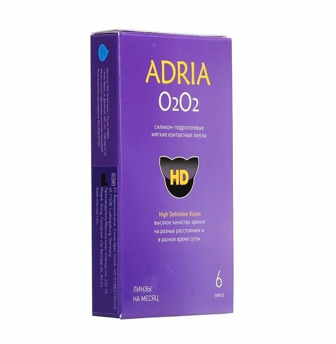 Контактные линзы ADRIA O2O2, ежемесячные, -8,50 / 14,2 / 8,6 / 6 шт.
