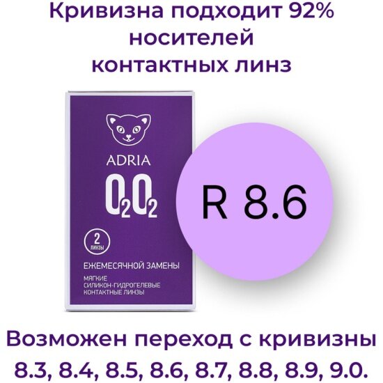 Контактные линзы ADRIA O2O2, ежемесячные, -9,50 / 14,2 / 8,6 / 2 шт.