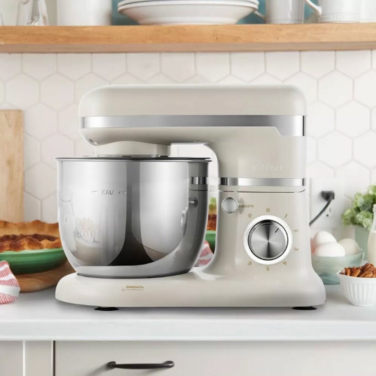 Планетарный миксер Kitfort КТ-1324-2, кремовый