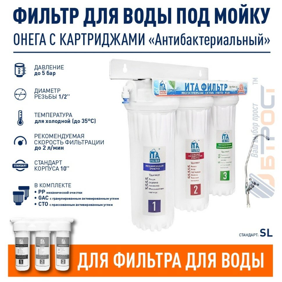 ИТА фильтр Питьевая система ОНЕГА-3СТ (антибактериальный) F10311