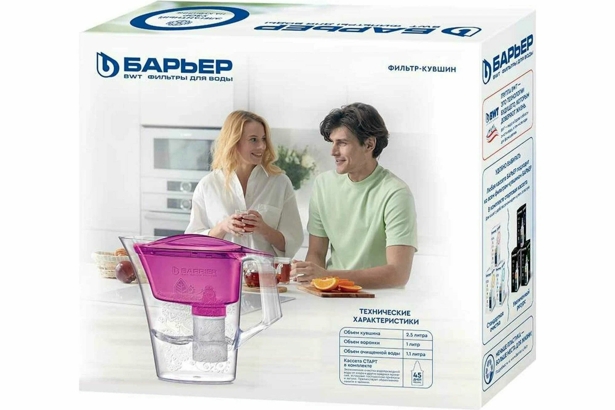 Фильтр кувшин для воды 2.5Л узкий С рисунком танго пурп БАРЬЕР