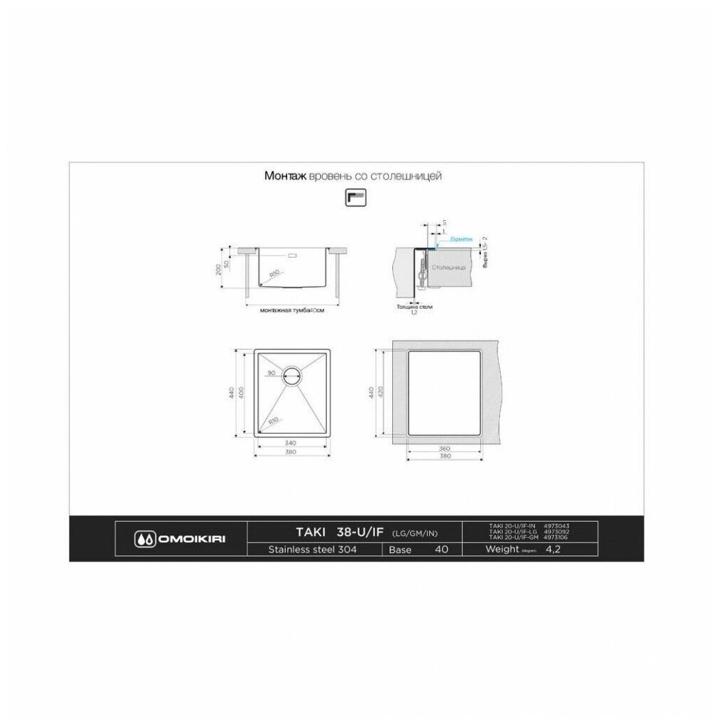 СохранитьКухонная мойка OMOIKIRI Taki 38-U/IF-GM, нержавеющая сталь/вороненая сталь интересное: