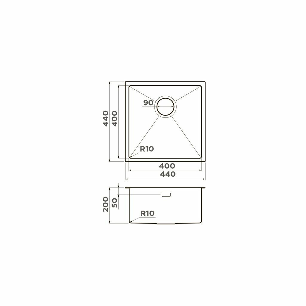 Кухонная мойка OMOIKIRI Taki 44-U/IF-GM, нержавеющая сталь, 44см х 44см