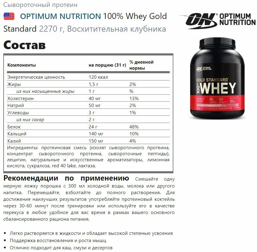 СохранитьСывороточный протеин Optimum Nutrition Gold Standard 100% Whey 2270 гр Клубника интересное: