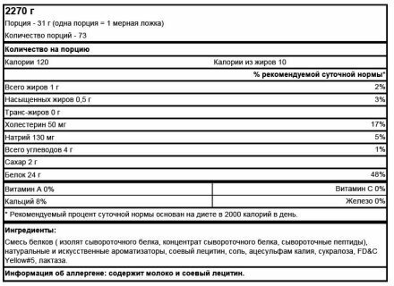 | Плюсы: | Надежный производитель. Белок хорошего качества. |