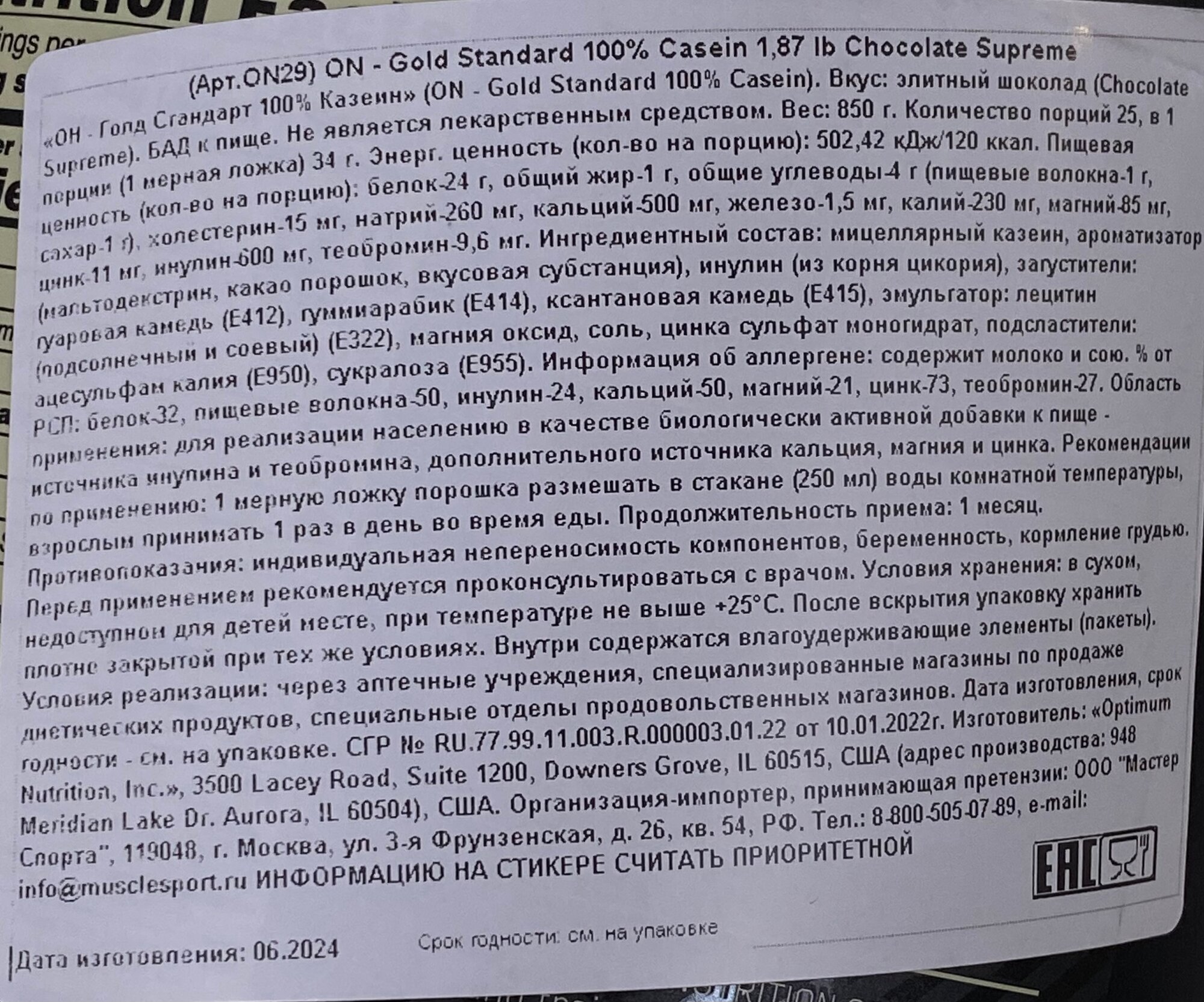| Отзыв: | Отличный казеин |