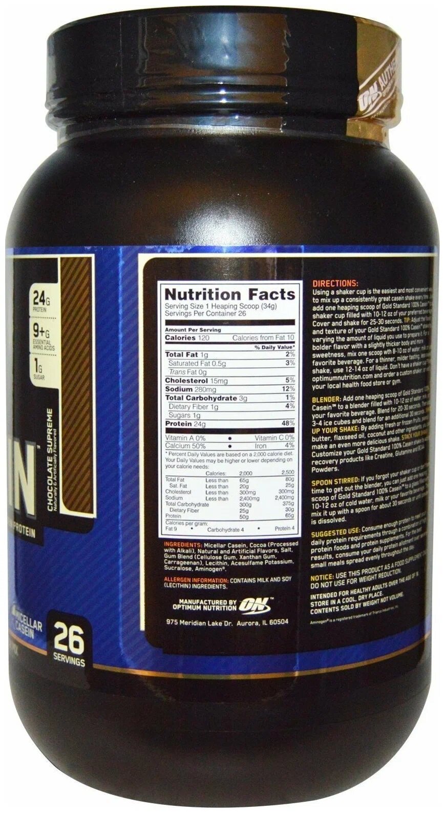 Протеин Optimum Nutrition Gold Standard 100% Casein 2 lb Chocolate Supreme
