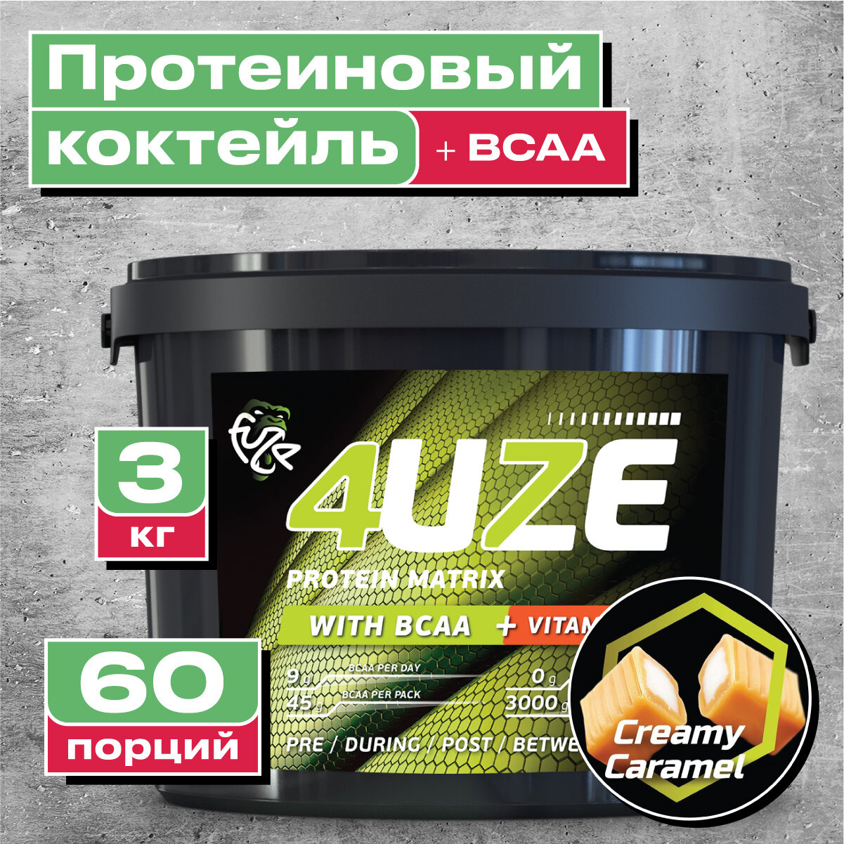 4UZE Мультикомпонентный протеин Фьюз 47% + BCAA , вкус «Сливочная карамель», 750 гр, 4UZE