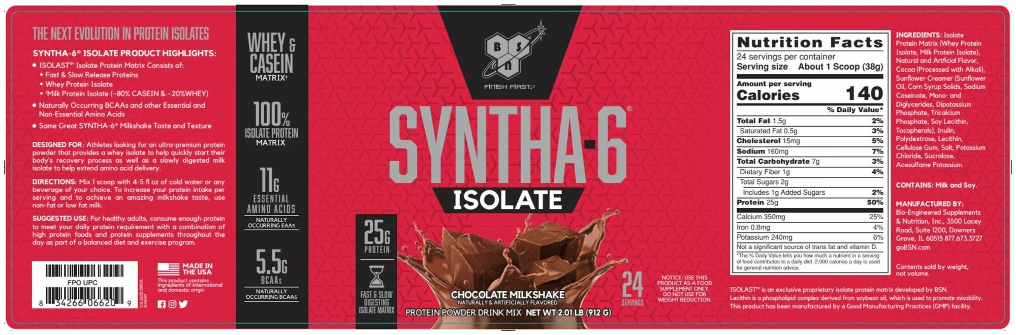 BSN, Syntha-6 Isolate, Protein Powder Drink Mix, Chocolate Milkshake, 2.01 lb (912 g)